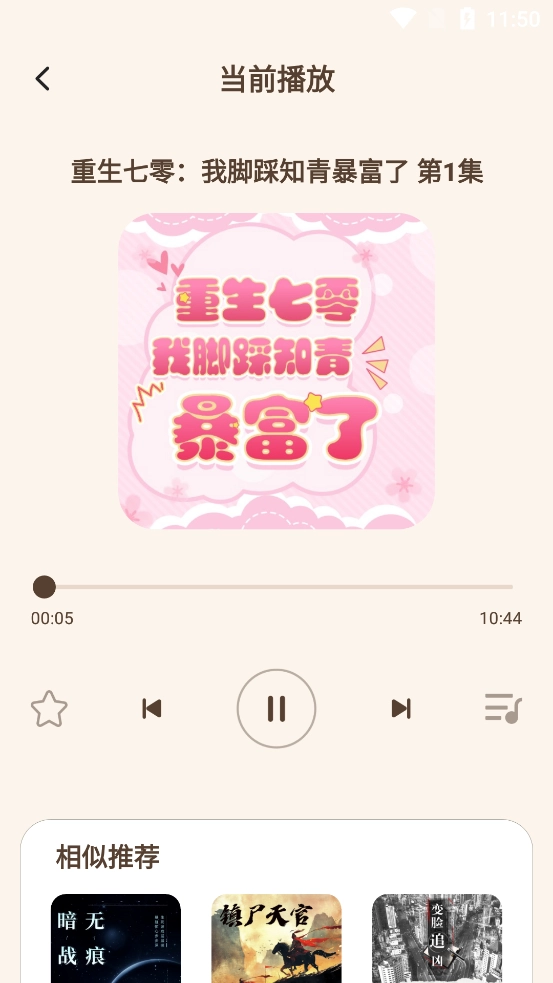 2. 寻得心仪书籍后,轻点书籍封面,即可进入播放页面,此时第一集将自动播放。
