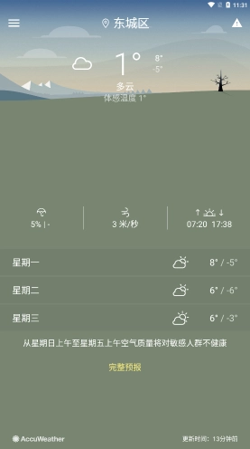 3. 丰富天气信息:除基本天气状况外,软件还提供空气质量指数、日出日落时间、紫外线强度等实用信息,助力用户更好地知晓当地天气情况。