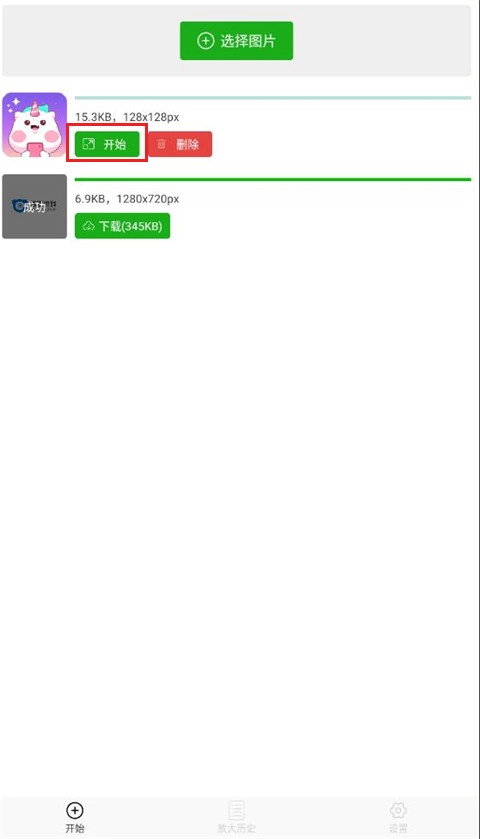 1. 开启软件,点击“选择图片”选项,接着从手机相册中挑选一张需要放大的图片。