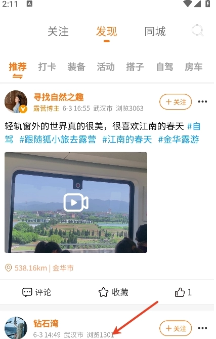 3、旅行结束后,用户可点击加号按钮,与他人分享自己的旅游打卡照片及感受。