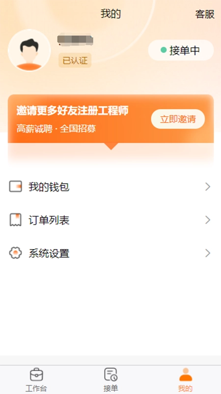 3、收益管理:我的钱包实时统计接单收益,支持一键提现至个人账户,方便工程师管理收入。