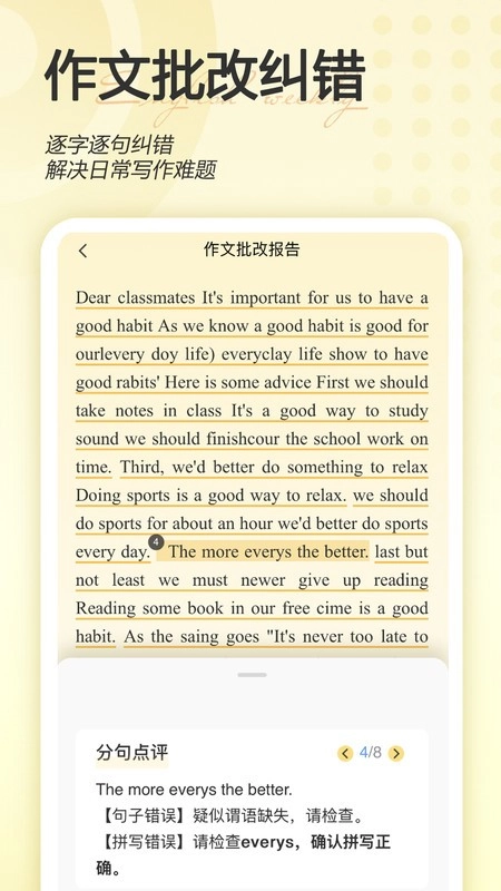 作文纠错:拍照上传你的作文,自动为你批改纠错,有效提升写作能力