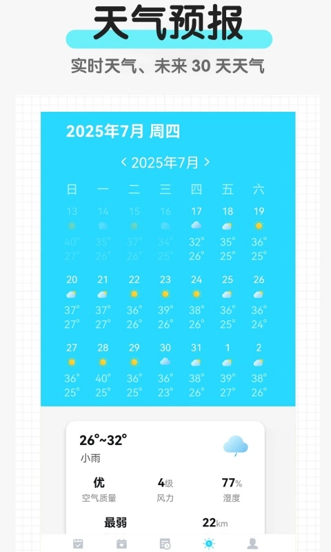 1. 农历与节假日实时同步更新,无需另行搜索,只要打开日历,就能马上了解传统节日习俗和法定假日安排,便于提前规划出行与日常生活。
