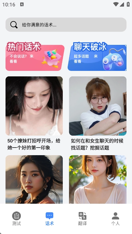2、话题技巧丰富,提供多样化的聊天技巧和话术,满足不同场景下的沟通需求。