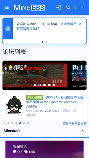 Minebbs我的世界中文论坛,是一款专门为我的世界玩家精心打造的中文论坛软件。借助这款论坛软件,每一位玩家都能够在其中畅快地交流游戏经验。论坛内还设有资源分享板块,涵盖了各类大佬自制的整合包、手机移植整合包、模组等丰富资源,能轻松助力玩家下载所需的游戏资源。