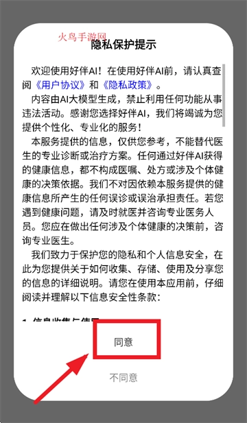 请下载并安装好伴AI应用程序,安装完成后打开该应用。打开应用时,首先要同意隐私保护提示。