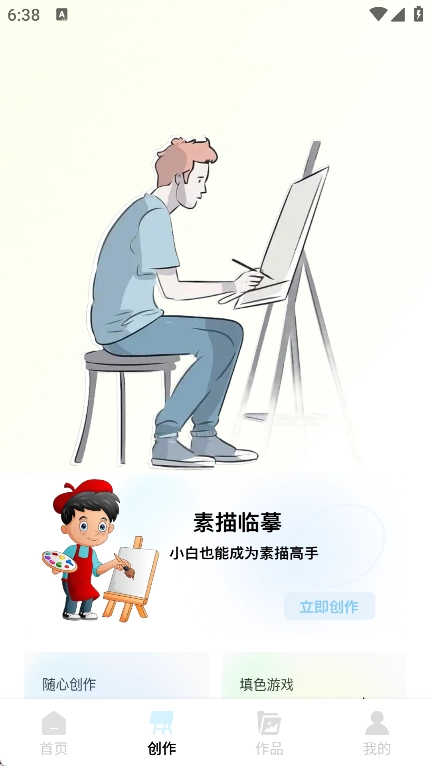 2、在创作页面中可以进行素描临摹、随心创作以及填色游戏等版块的操作;