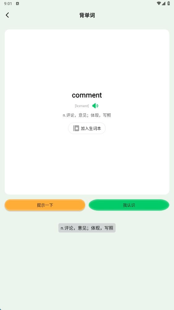3、提示功能能让你了解到每个单词词义,知晓具体中文解释。