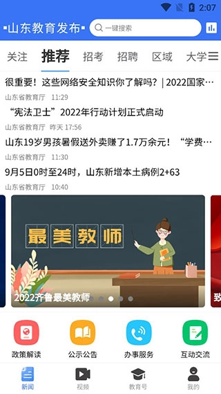 2、完成登录后,各位能够在首页看到山东教育厅最新发布的消息,还有其他相关教育资讯。