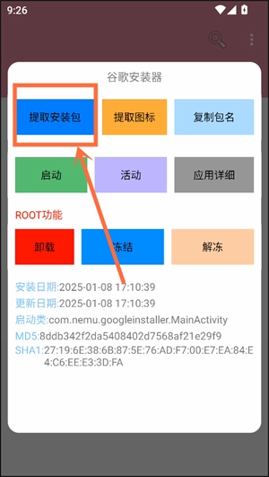 5、可以一键启动,提取图标,复制包名,查看应用活动等。