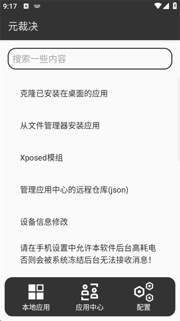 模块管理及配置:设有应用中心远程仓库,能够下载适配的Xposed模块;支持通过文件管理器安装APK/XAPK模块,克隆后即刻自动生效。