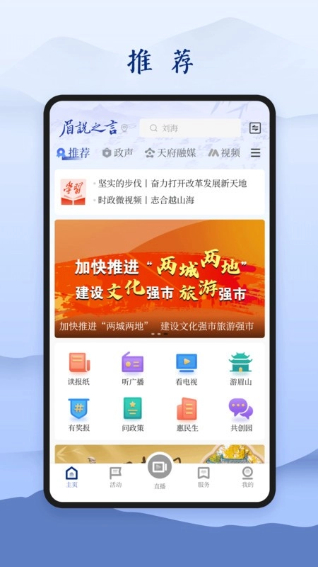 APP首页设计既直观又美观,用户能轻易发现新闻、视频、社群以及服务等入口。尤其值得一说的是,APP内整合了视频播放功能,市民借助它可随时观看眉山的各类活动与新闻。其社群功能还会激励用户分享生活中的美妙时刻,同时为眉山的未来发展献上建设性意见。
