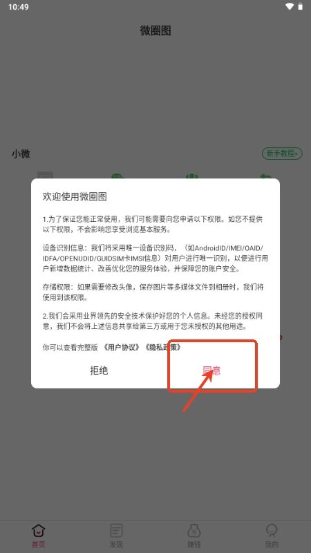 1、在本站下载微圈图,打开后点击同意软件政策;