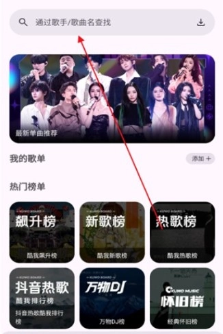 2、输入自己想要下载的歌曲关键词。