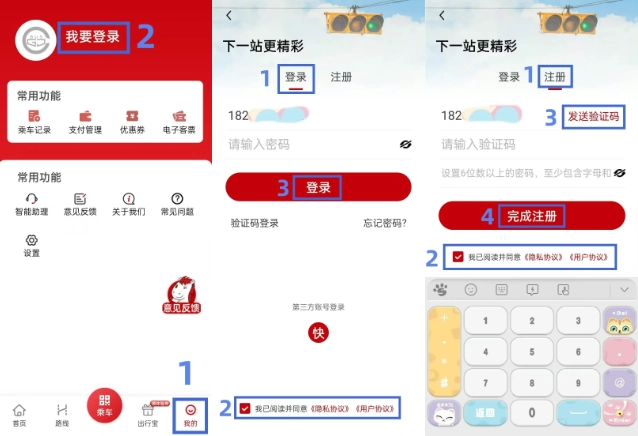 首先打开个旧公交App,接着点击界面右下角的“我的”选项,随后点击页面上方的“我要登录”,最后在出现的选项中选择“登录”或者“注册”。