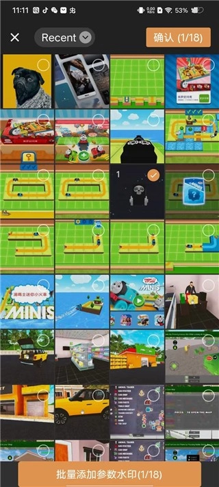 3、在水印板块里任选一张,点击进入,挑选想要添加水印的照片,最多能选18张。