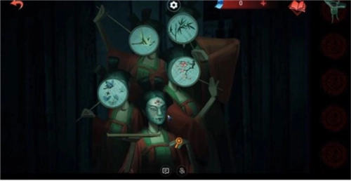 6、点击灯笼下的解谜,按照女主的线索调整成下图样子,打开左边山洞的门。