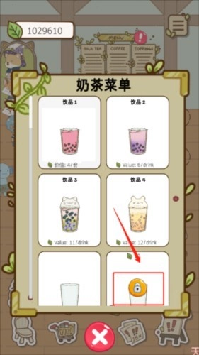 1、进入游戏点击图示奶茶菜单墙;