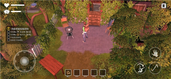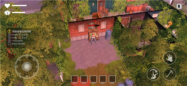 2、依照游戏指引提升技能,学会使用撬棍破坏家具。把前方阻碍道路的家具破坏掉,收集其掉落的材料,随后进入内部。