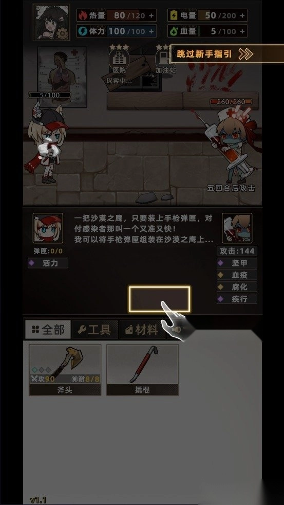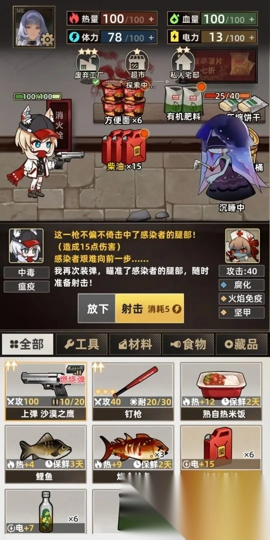 4. 组合武器进行回合制战斗,驱赶感染者。