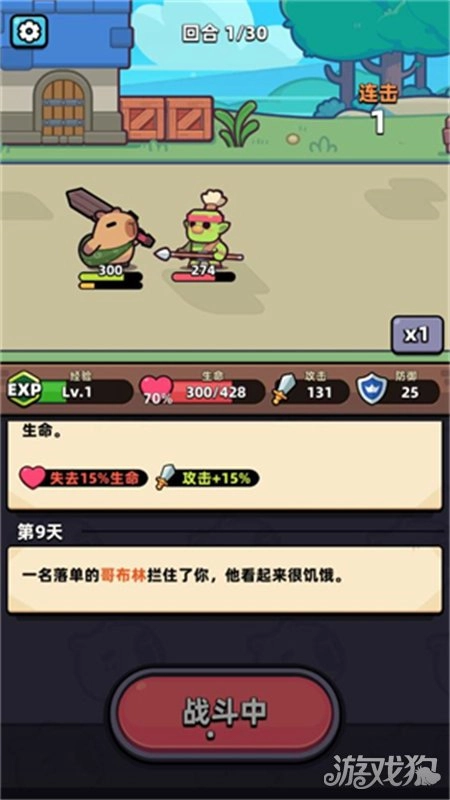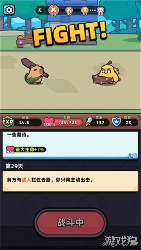 3、当遇到怪物后会展开战斗,击败怪物就能继续前进。