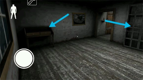 这里是出生房,当靠近床的时候,点击右上角就能躲到床下,衣柜同样也能藏身。床头柜左边的抽屉里,写着三行红字:Leave this house(离开这个房子),而右边的抽屉通常不会刷出物品(至少楼主没碰到过)。在这个房间里,只有花瓶以及放置花瓶的桌子能够被推倒,花瓶还可以拿起来扔到地上。到了Day2(第二天),出生房的门就会被锁住,所以得通过扔花瓶或者推倒桌子来吸引奶奶过来,随后躲进床下或者衣柜,等奶奶离开。