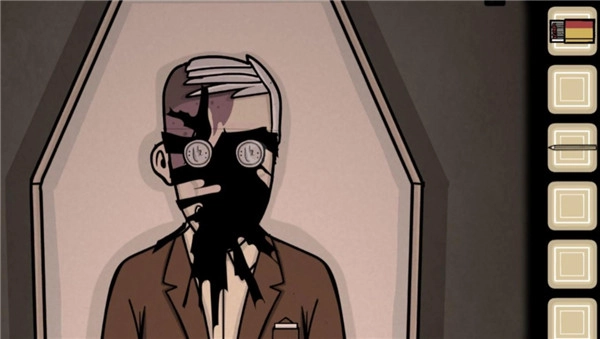 过去:当输入排风扇上的时间后,场景发生变化,Albert的遗像掉落地上,从遗像处拿到钥匙打开抽屉,从而获得面具。随后在镜子前戴上该面具,并将墙壁上图案的顺序传达给未来。