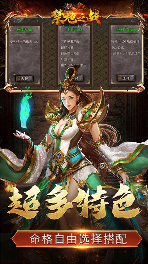 《禁地之战》是一款以复古风格打造的单职业传奇手游,它传承了经典的战法道三职业设定,为玩家呈现出一个充满神秘色彩的传奇世界。玩家踏入《禁地之战》的游戏世界,便能领取海量福利礼包,助你轻松熬过前期的乏味阶段。在游戏进程中,更多精彩系统会逐步解锁,助力你的战力稳步提升。无论你是零氪玩家,还是小额、中度氪金玩家,亦或是氪金大佬,都能在这款游戏中尽情畅玩,收获无尽欢乐。此外,游戏中还有丰富多样的PVP、PVE模式,等待着你去探索体验。