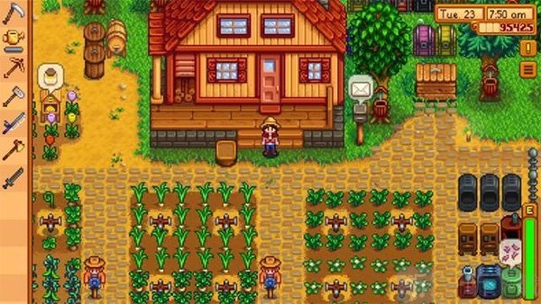 1. 拥有极高自由度的农场经营玩法,玩家的活动不局限于种植庄稼与饲养家畜,还能够钓鱼、烹饪、冒险、挖矿等等,随心所欲地开展各类活动。