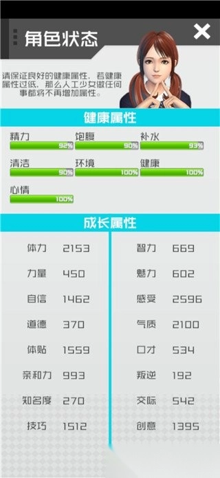 状态里包括健康属性和成长属性
