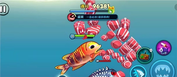 2、我们还能够借助技能,助力自己更迅速地消灭敌人。当敌人被成功消灭后,会化作几块鱼肉,我们得吃掉这些鱼肉,以此增加自身的经验值。