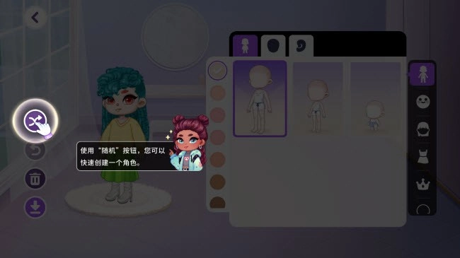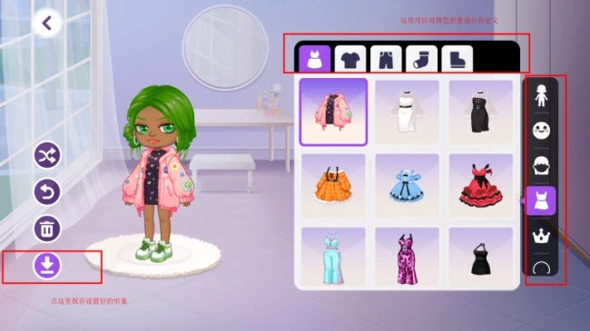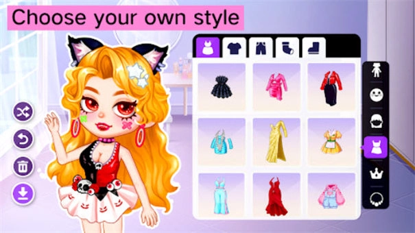 1、角色创造:创建独一无二的角色,搭配新潮服装和炫目配饰,展现个人风格。