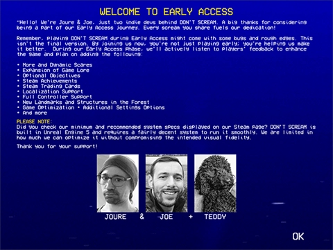 《不要尖叫》联机版是一款以恐怖为主题的逃脱冒险模拟游戏。游戏里,玩家需要在保持安静、不发出尖叫的前提下,深入森林展开探索。随着时间一分一秒地过去,会有越来越多诡异离奇的事件接踵而至。玩家必须时刻控制好自己的声音,想尽办法在这片危机四伏的森林中生存下来。