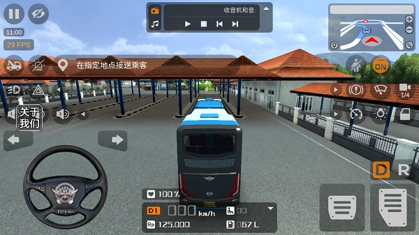 按照导航路线驾驶巴士,接送乘客并安全送达目的地。