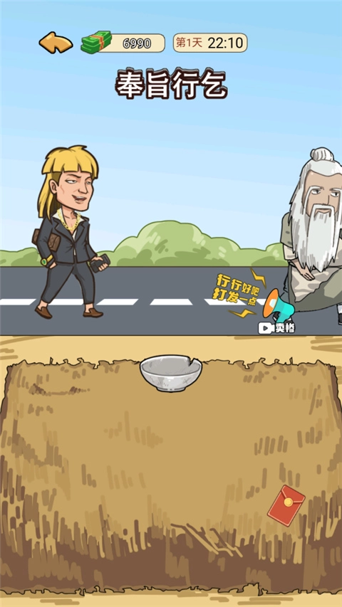 10、扮演乞丐后行人会自定打赏物件,它会自动转换成钞票;