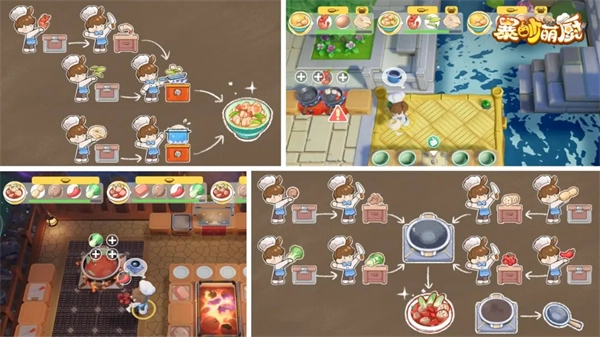 这里有着丰富多彩的美食佳肴,烹饪方式多样,煎、炒、烤、焖、炖等应有尽有。此外,还有传送带、火焰、传送门等各类机关道具。