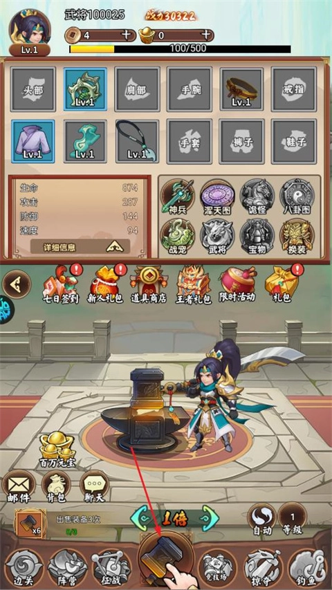 1. 玩家进入游戏后,点击下方的“锻造”,就能获取各类装备。