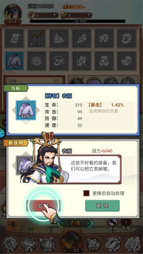 2、若获取到相对应的装备,哪个装备属性好就直接替换,把属性不佳的装备分解。这样做不仅能获得一些钱财,还能吸纳装备中的精气来提升等级。