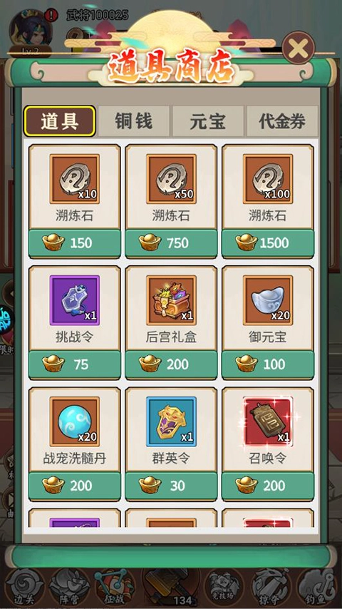 4、玩家在道具商店中,还可购买溯炼石、群英令、改名卡等道具。