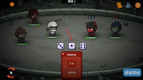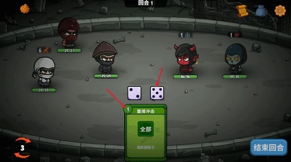 3、战斗开始后,我们可以在每一回合开始时获得三个骰子点数。