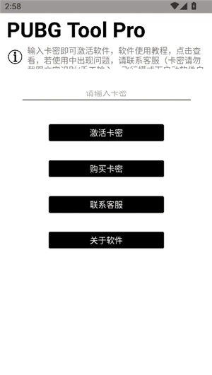1、在本页面下载pubgtoolpro画质,安装后打开,点击“购买卡密”