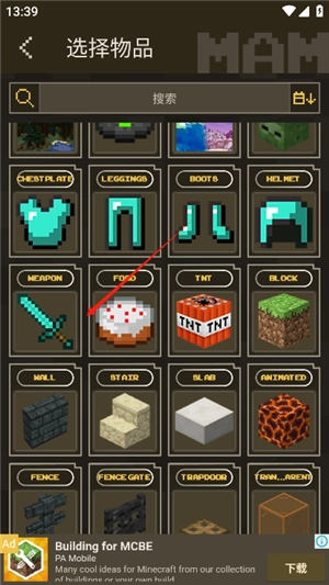 3、接着挑选一个你打算修改的物品,在小编这儿就以钻石剑为例。