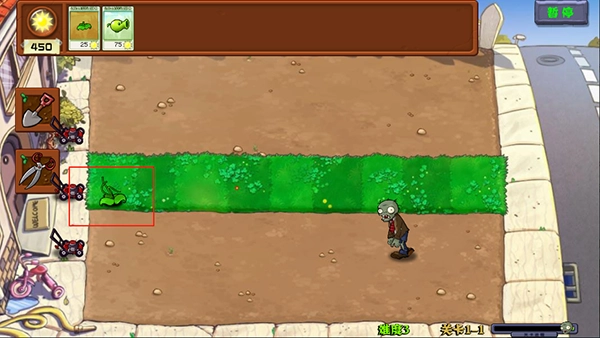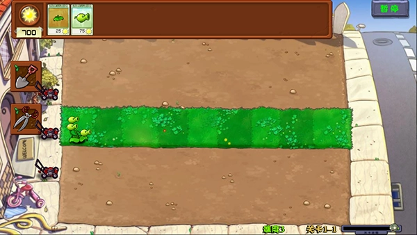 4、首先种植三次叠加的豌豆根,它能够攻击三条路线,不过叠种的根会额外消耗25点阳光