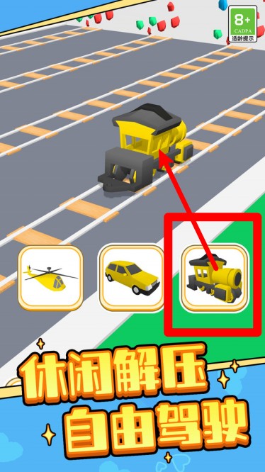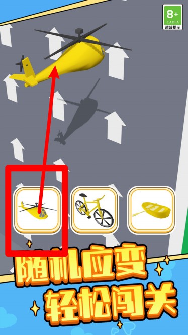 1. 轻点左下角图标,选择直升机形态。如此一来,便能飞越高空障碍与上升通道,在复杂地形中轻松穿梭,快速抵达下一段赛道的位置。