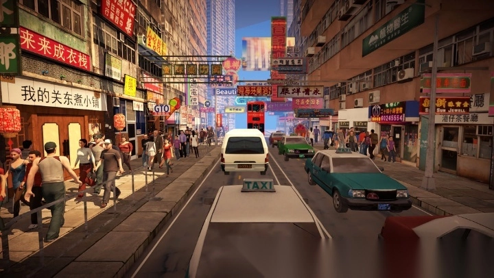 1)游戏以香港为时代背景展开主题,在游戏过程中,你能目睹诸多复古元素以及满是港风的建筑物,为你呈上一场别具一格的视觉盛宴。
