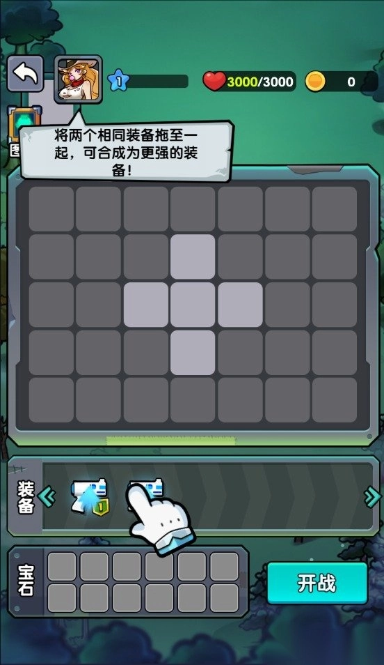 3. 将两个相同装备拖至一起,可合成为更强的装备!