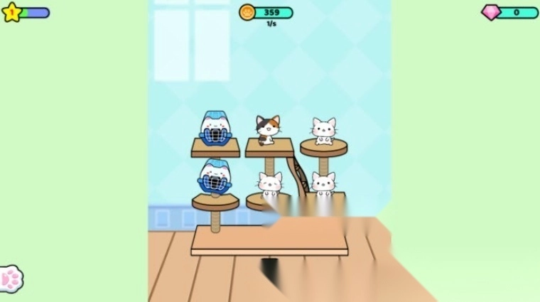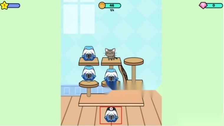 1当你打开游戏,映入眼帘的是一个架子以及若干猫笼。猫笼会依据倒计时,自动诞生新的猫咪,等待所需的时间并不长,玩家能够轻松惬意地养猫,毫无负担。