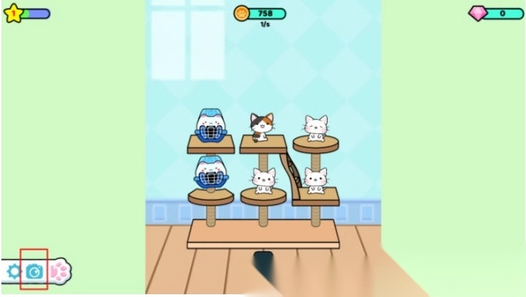 5. 在游戏的左侧,有个“猫爪”图标,它具备互动功能。只要点击其中的相机按钮,就能为你钟爱的猫咪拍照留存。不仅如此,你还能把拍下的照片保存起来,或者分享给朋友们,一同展示你最心水的猫咪组合!