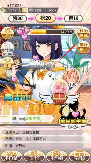 想体验一掷千金的榜一大哥生活吗?那就来试试榜一模拟器!这是一款模拟主播互动的超有趣休闲手游。在这里,你将摇身一变成为网络神豪,轻松游走在百位风格迥异的美女主播直播间。豪刷火箭、跑车、别墅等逼真还原的直播礼物,疯狂提升主播好感度,与其他玩家激烈争夺榜一之位!随着打赏等级不断攀升,还能解锁主播的专属小秘密,深入探寻她们的幕后故事。激情打榜、弹幕互动,感受土豪一掷千金的畅快,榜一模拟器都能让你沉浸式领略直播江湖的独特魅力!快来秀出你的实力,成为全网最耀眼的榜一大哥吧!