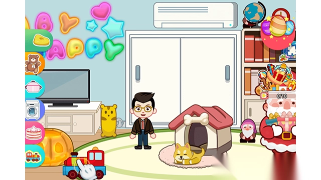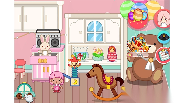 游戏里面设置了主卧、厨房、儿童房、游乐场等众多场景。每个场景中都分布着从事多种职业的 NPC 。宝宝不仅可以自行装扮成喜爱的角色,还能将角色放置在场景里,讲述属于自己的故事。